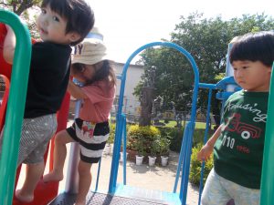 裸足で外遊び🐰月うさぎ🐰2021/06/24 裸足で外に出ると大好きな遊具に一直線💨💨 今日もたくさん遊びました💕 デッキも気持ちがいいね✨ 「おねえちゃーーん😢」 お兄ちゃん、お姉ちゃんたちが会いに来てくれます💖 来週また待っています❕