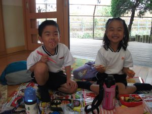 🍙遠足の後は…♡(年中)🍫2021/10/15 遠足から帰ってきた後は、 各クラスの教室やテラスでシートをひいて お弁当やお菓子を食べました😋🍱🍭 いつもの机とは雰囲気も違って 遠足気分を思いっきり楽しむ 子ども達でした🌼🎶 すみれぐみ ももぐみ ゆりぐみ ひまわりぐみ 保護者の皆様、 今回も美味しいお弁当を ありがとうございました😊❣