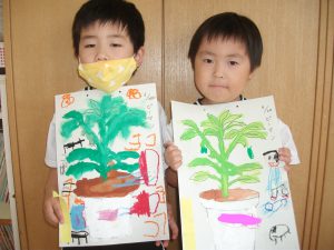 自分の絵を描いたり、ピーマンを沢山描いたり…それぞれ素敵な絵が完成しています😉