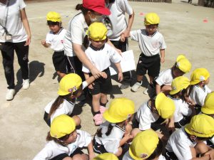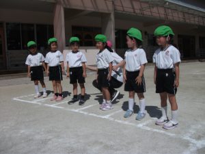 全園児、外に集まり