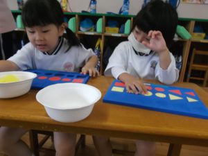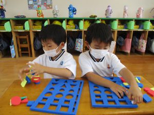 今回は、”はじめてのあそび”の教材のブロックを使って遊びました🎶