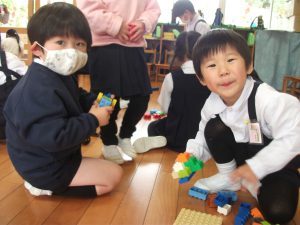 ブロックをたくさん繋げて車を作ったり、お城を作ったり…