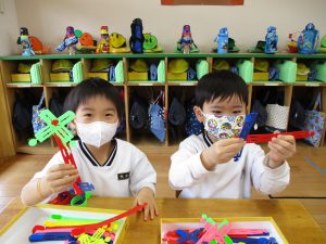 と、作ったものを友達と見せ合い楽しく遊びました😄