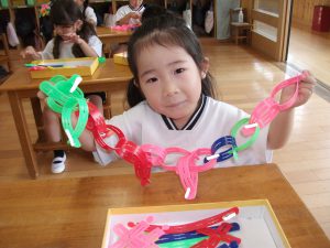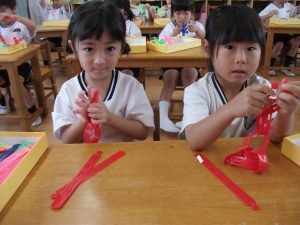 ピップ遊び(年中)2023/06/26 今日は泥んこ遊びの予定でしたが 雨の為中止となり、みんなでピップ遊びをしました☺️ 「見て~!こんなの作った!」と 友達と見せ合いながら楽しそうな子どもたち❤️ その様子をご紹介します✨✨ <すみれ> <もも> <ゆり>