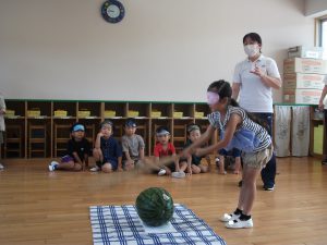 と、大喜びな中、順番に目隠しをしてスイカ割りのスタートです😆
