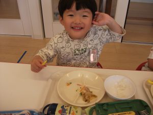 魚にほうれん草と自分で食べ進めていた子ども達、
