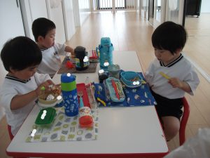 クラスが違うお友達とも、話をしたり、一緒にご飯を食べたりと