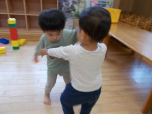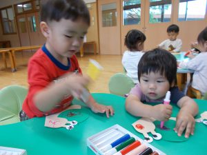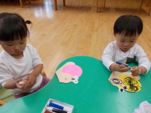 雨の中、涙の登園の子どもたちもいましたが、おへやに入ると元気いっぱいです。