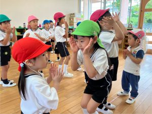 はじめての縦割り保育😆2024/05/30 今日は、初めての縦割り保育でした😁 いつもと違うクラスに行き、初めての友達がいて… 表情もドキドキな子ども達でした😳💨 自己紹介をしたり、♪バナナのおやこを踊ったりと 少しづつ笑顔も見られるようになり 部屋にもどる時には、笑顔いっぱい😁😊😆 次回はみんなで『玉入れ』をしますよ🤩 ぜひ、楽しみにしていてくださいね~😊🎈