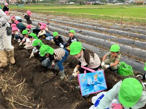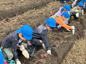 🍠芋掘りにいってきました🍠2024/11/01 昨日は、楽しみにしていた芋掘り🍠✨ 少し天気が心配でしたが、 曇りの過ごしやすい天気で 元気いっぱい芋掘りできました💪 大きな芋、小さな芋、繋がった芋…! 色んな芋を収穫でき、 大興奮の子どもたちでした😆🎵 楽しかった!がんばった!の気持ちと共に、 食べ物や作ってくださる方への 感謝の気持ちも持てるといいなと思います🥰 また、お芋を食べてからの感想が聞けるのも 楽しみにしています💕