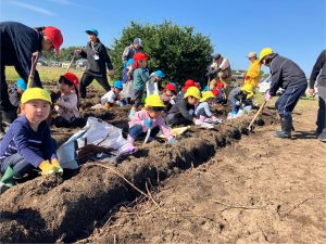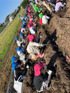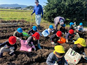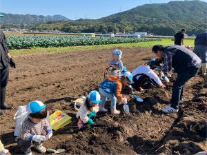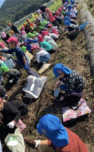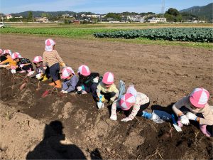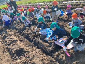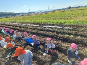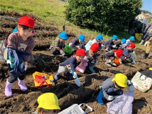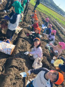 一生懸命に堀り、出てくるお芋に大興奮!!「見て!!大きいの!」「可愛いお芋もあったー!」と芋の大きさや形を見て楽しんでいました😊友達と力を合わせて引っ張る姿もたくさんで、どうやって食べようかと話をして盛り上がっていました🥰