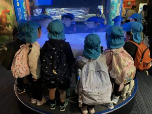 大きなバスに乗ると、外の景色を見ながらわくわくな表情の子ども達!マリンワールドに到着してからは、館内巡りでお魚やイルカ、ペンギンを観たり、お弁当、お菓子を食べたり✨「可愛いね〜!!」「見てみてー!!」と大興奮で見る姿や、「すごいね、、」とちょっぴりドキドキな姿も見られました!