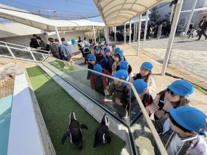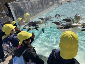 大きなバスに乗ると、外の景色を見ながらわくわくな表情の子ども達!マリンワールドに到着してからは、館内巡りでお魚やイルカ、ペンギンを観たり、お弁当、お菓子を食べたり✨「可愛いね〜!!」「見てみてー!!」と大興奮で見る姿や、「すごいね、、」とちょっぴりドキドキな姿も見られました!