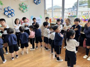 🌸お別れ会🌸2026/03/09 今のクラスで過ごすのもあと5日になり、今日はみんなでお別れ会を行いました☺️ 年長さんへ歌のプレゼントをしたり、先生たちの劇を観たり、ダンスをしたり…✨楽しく過ごして、最後はトンネルを作って年長さんを送り出しました🌸 給食もみんなで集まり、色々な友達との関わりを楽しんで過ごしました😊 残りの時間を大切に、みんなで楽しい思い出を沢山作っていけたらなと思います✨