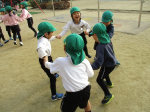 今日は、園庭でクルクル回って遊んでいた