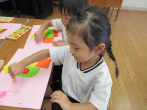 今日は、金曜日に作った製作にお絵描き🖍です。