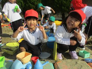 「砂場、楽しいよ~!!」