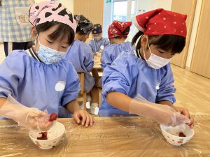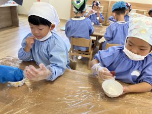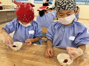 そして、1粒ずつ入ったお皿を配ってもらい~