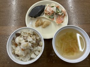 今日のメニューの肉ごぼう飯には。。。