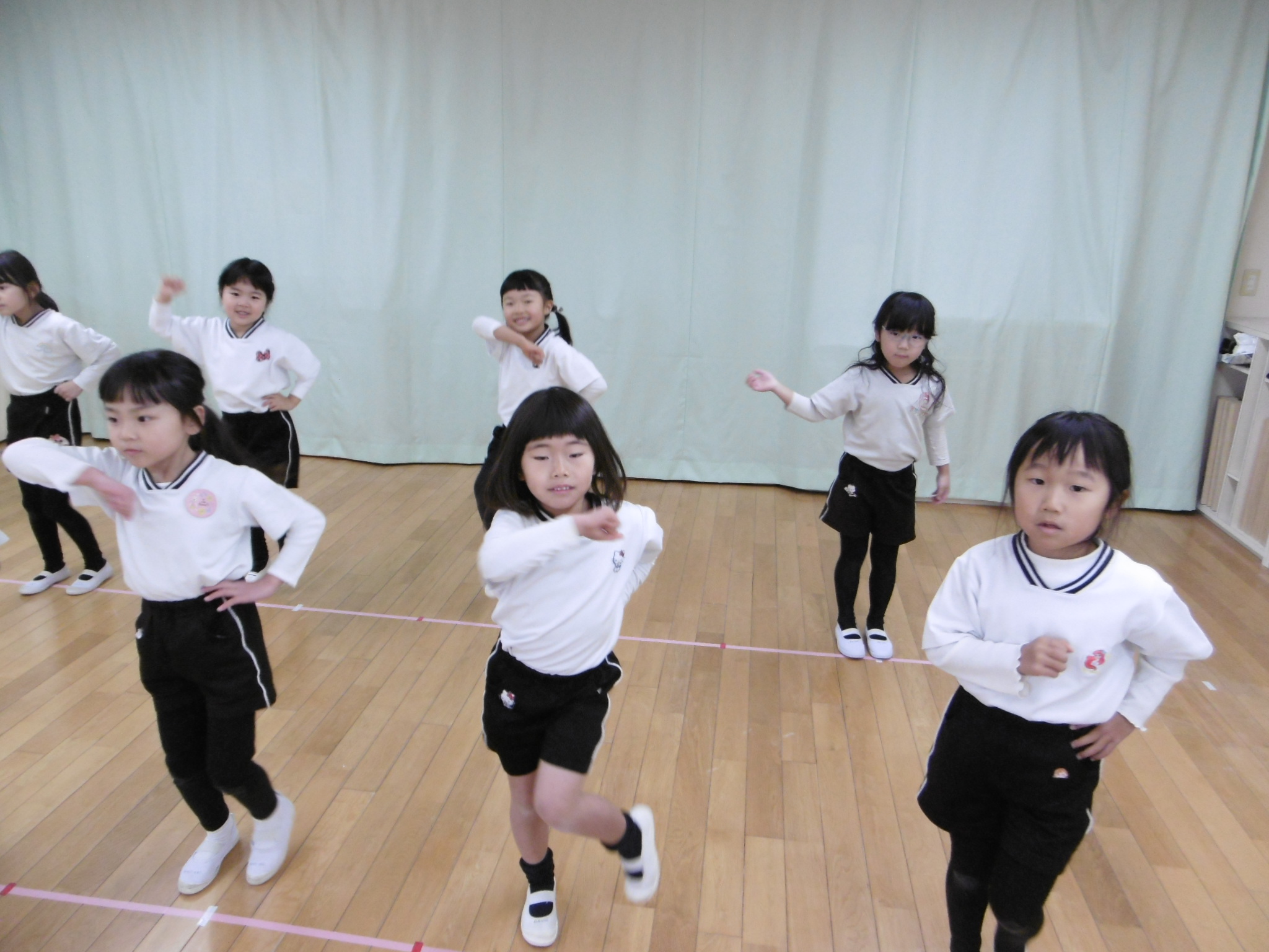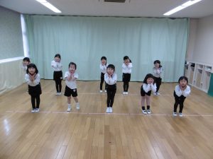 男の子はかっこよく、女の子は可愛く踊ることを伝えると、「こうする?」と踊りのアイディアや決めポーズを考えてくれ、きく組らしい元気なお遊戯が完成しました😊