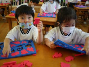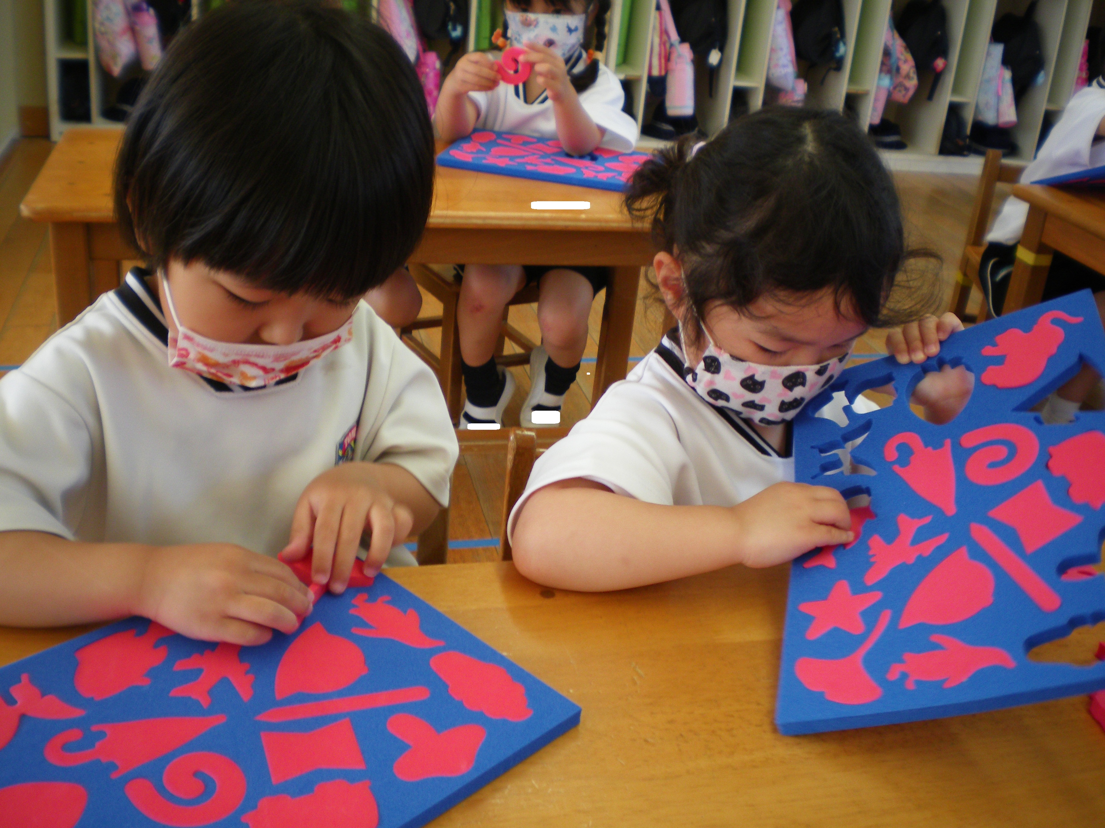 そして初めて取り組んだめざましあそび。今日は『かたちあそび』をしました。
