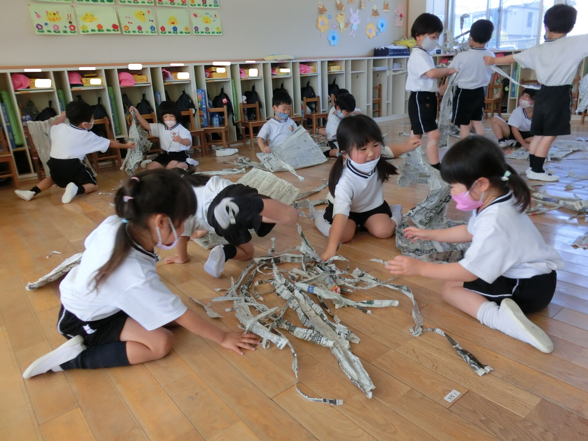 新聞を沢山ちぎって遊びました!