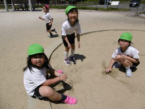 道路を渡る時は手を繋いでない方の手を挙げたり、自分でも右左確認しながら公園まで暑い中みんな頑張って歩いていました!✨