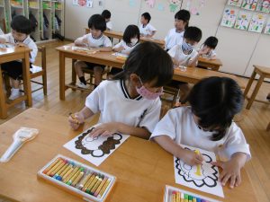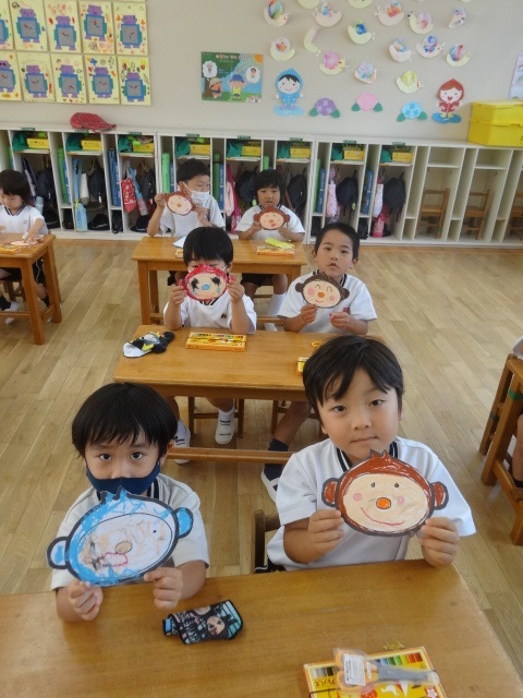 カラフルに塗る子もいて、それぞれオリジナルのお面ができました!🐷🦁🐼🐱