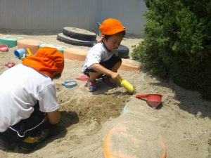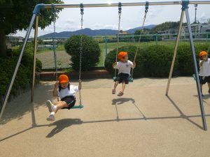 鉄棒、ジャングルジム、ブランコなどの遊具で遊んだり、砂場でお山を作ったり、鬼ごっこをしたり…と元気いっぱい体を動かしていました!!