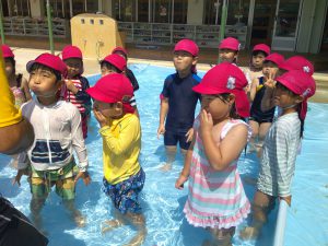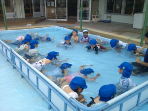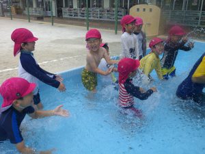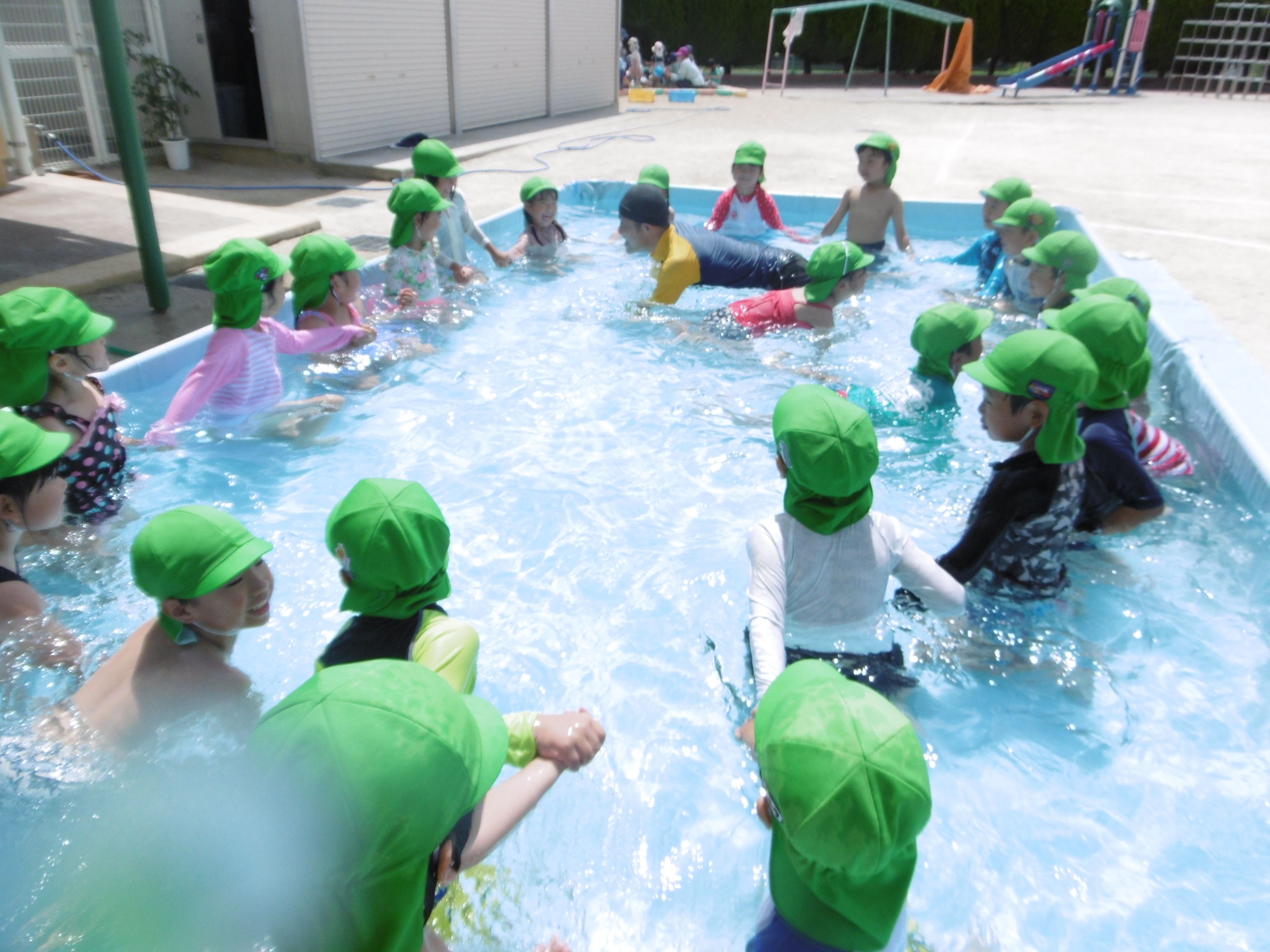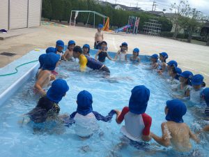 年少、年中とプールができず、年長さんにとって、はじめてのプール遊び!!