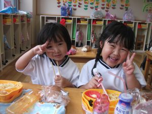 沢山遊んだ後は「お腹減ったー!」「今日は焼きそばよね!」と給食を楽しみにしていた、ちゅうりっぷさん☆