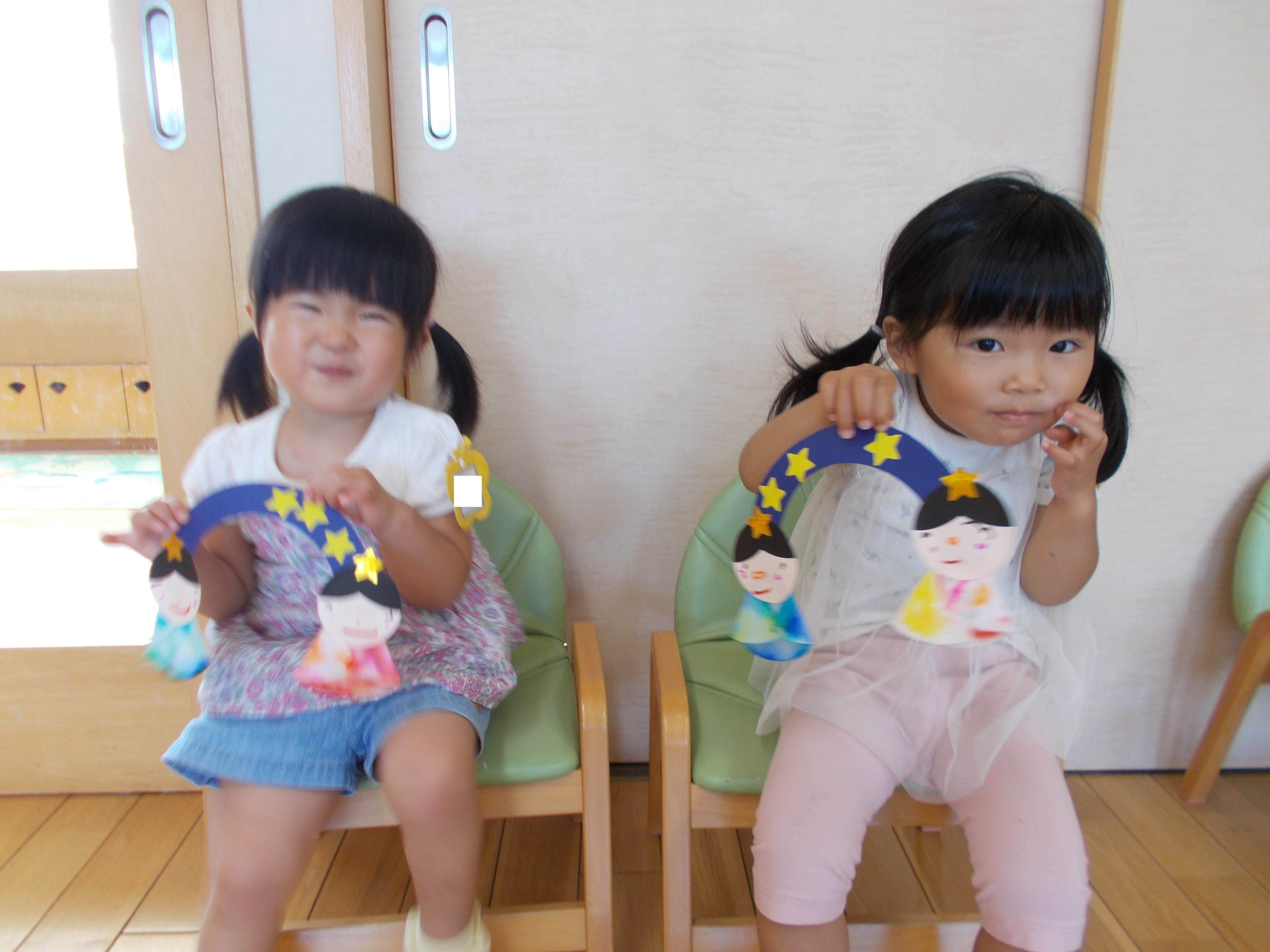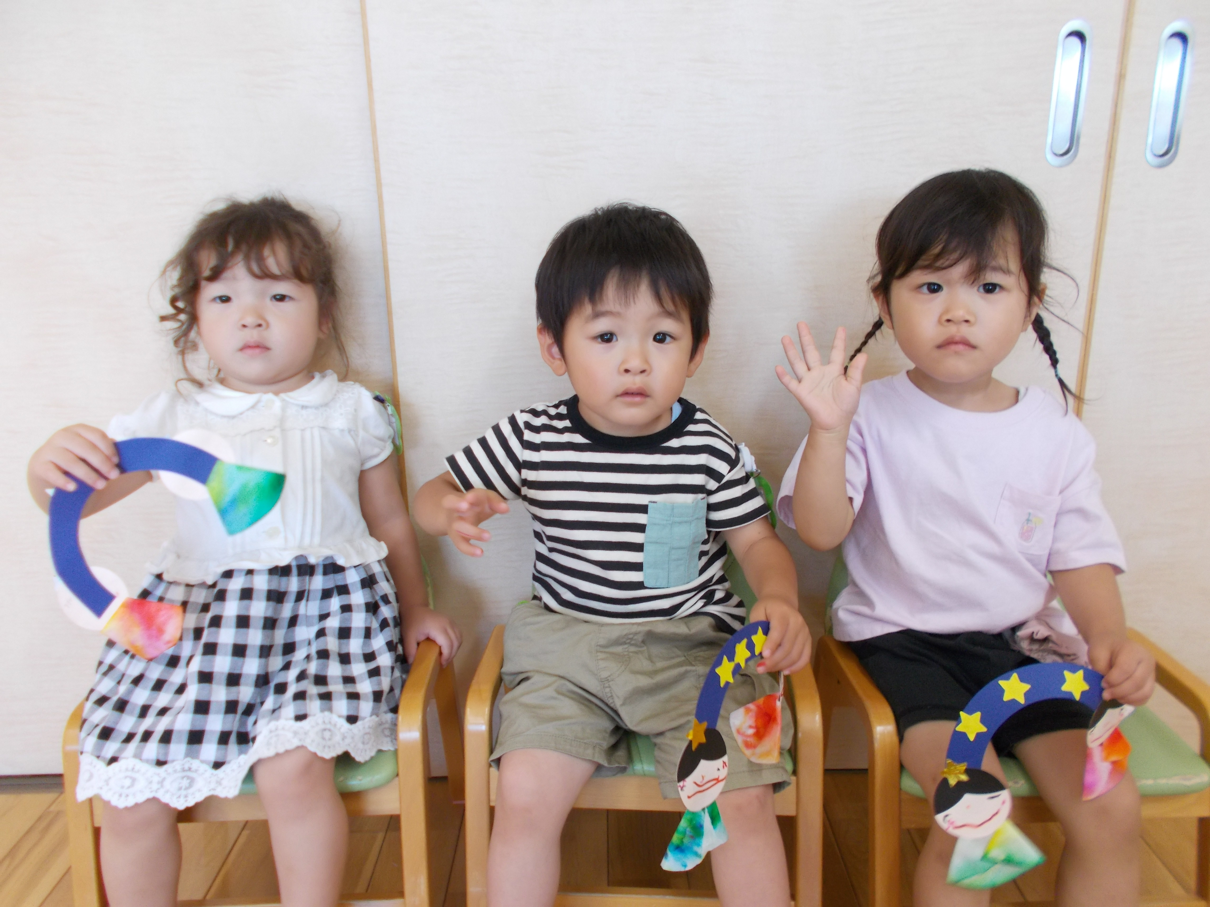 うさぎぐみ🐰願いを込めて…🎋2022/07/07 七夕飾り製作をしました🖍 完成した作品は、こちらです(^^)/✨ ≪月うさぎぐみ≫ ≪星うさぎぐみ≫ 今日は、七夕の日🎋天の川が、見られるといいですね👀🌟 みんなのお願いごとが、叶いますように…☺✨