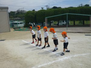 運動会に向けての練習が始まり、今日の体育では、かけっこの練習をしました。