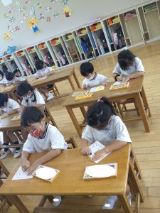 久しぶりにクレパスを使ったので、細かいところまで丁寧に塗っていました。