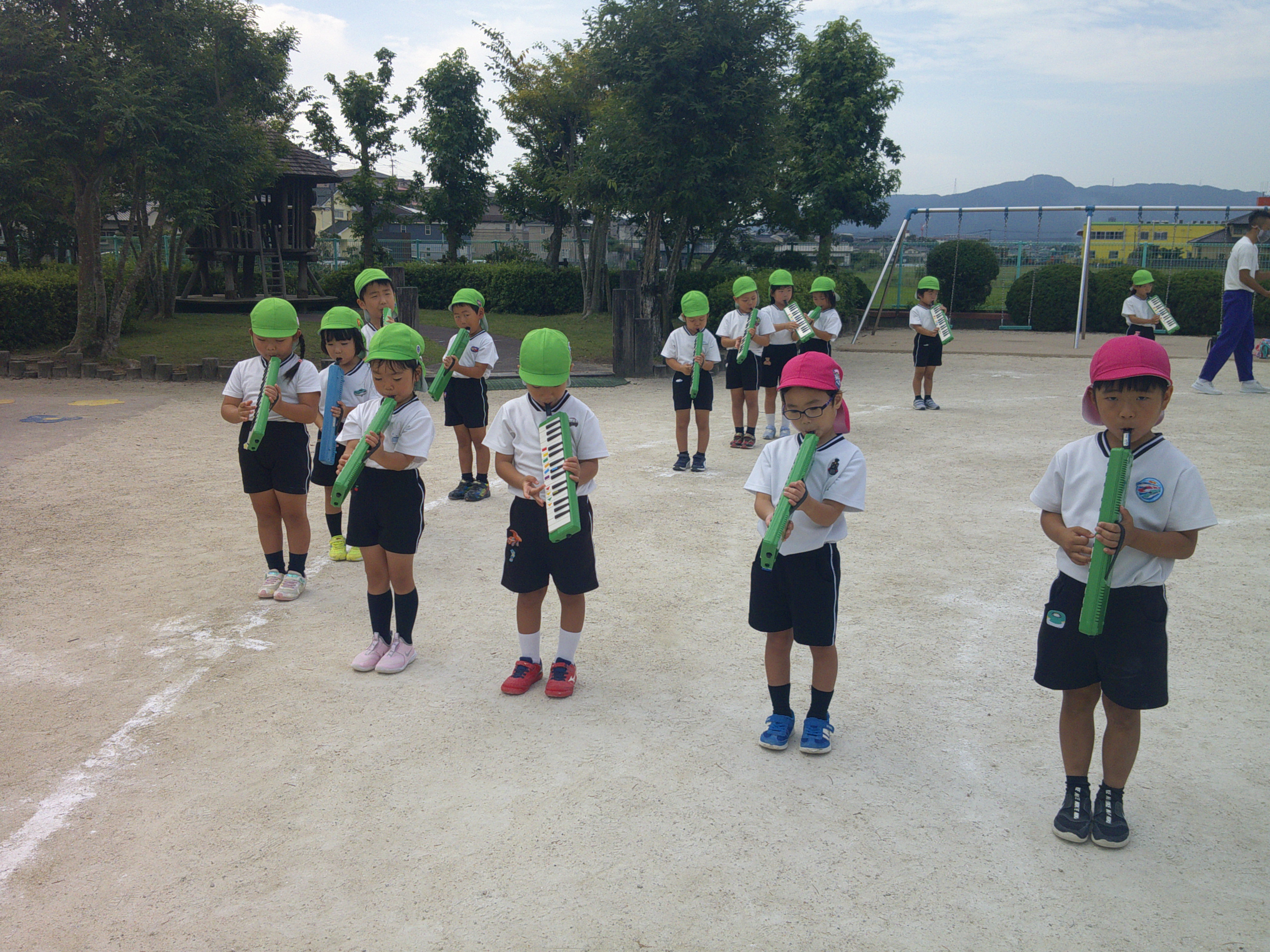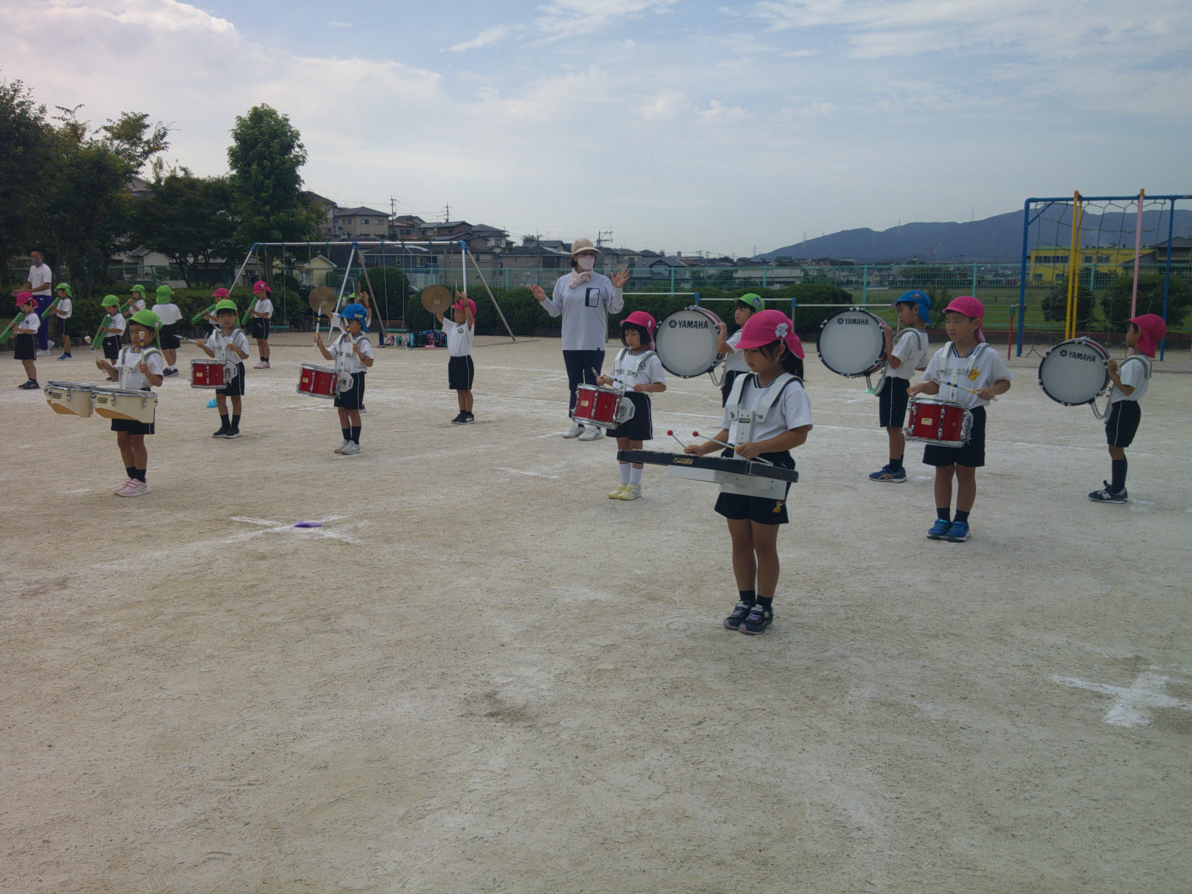 今日は朝から初めて楽器を持って外でマーチングの練習をしました!楽器を持っての行進、移動に戸惑いつつも練習を重ねるにつれて少しずつ覚えてきているところです!