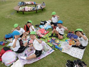 年長さんみんなで食べるのが初めてだったので、ワクワク・ウキウキで準備をし、手作り弁当とお菓子をおいしく食べました🍱💕