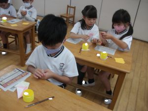 作りながら「なんかおなか減ってきた~」と食いしん坊なお友だちもいました( *´艸`)