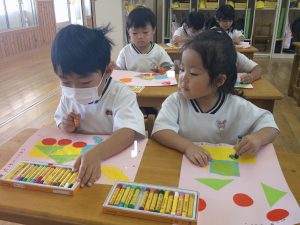 来週はお店屋さんごっこの品物作りをします。何を作るか、ワクワクしている子どもたちです💕