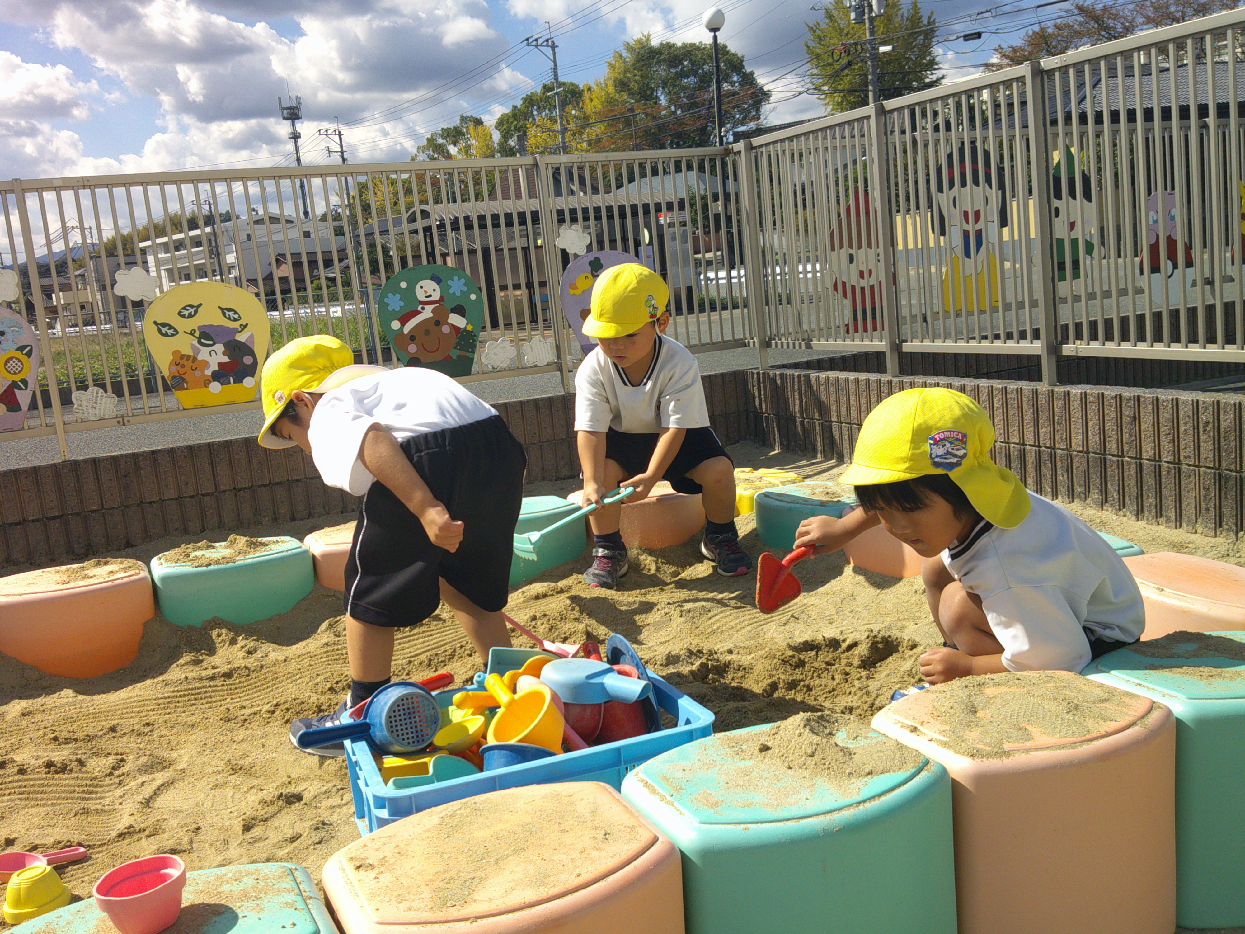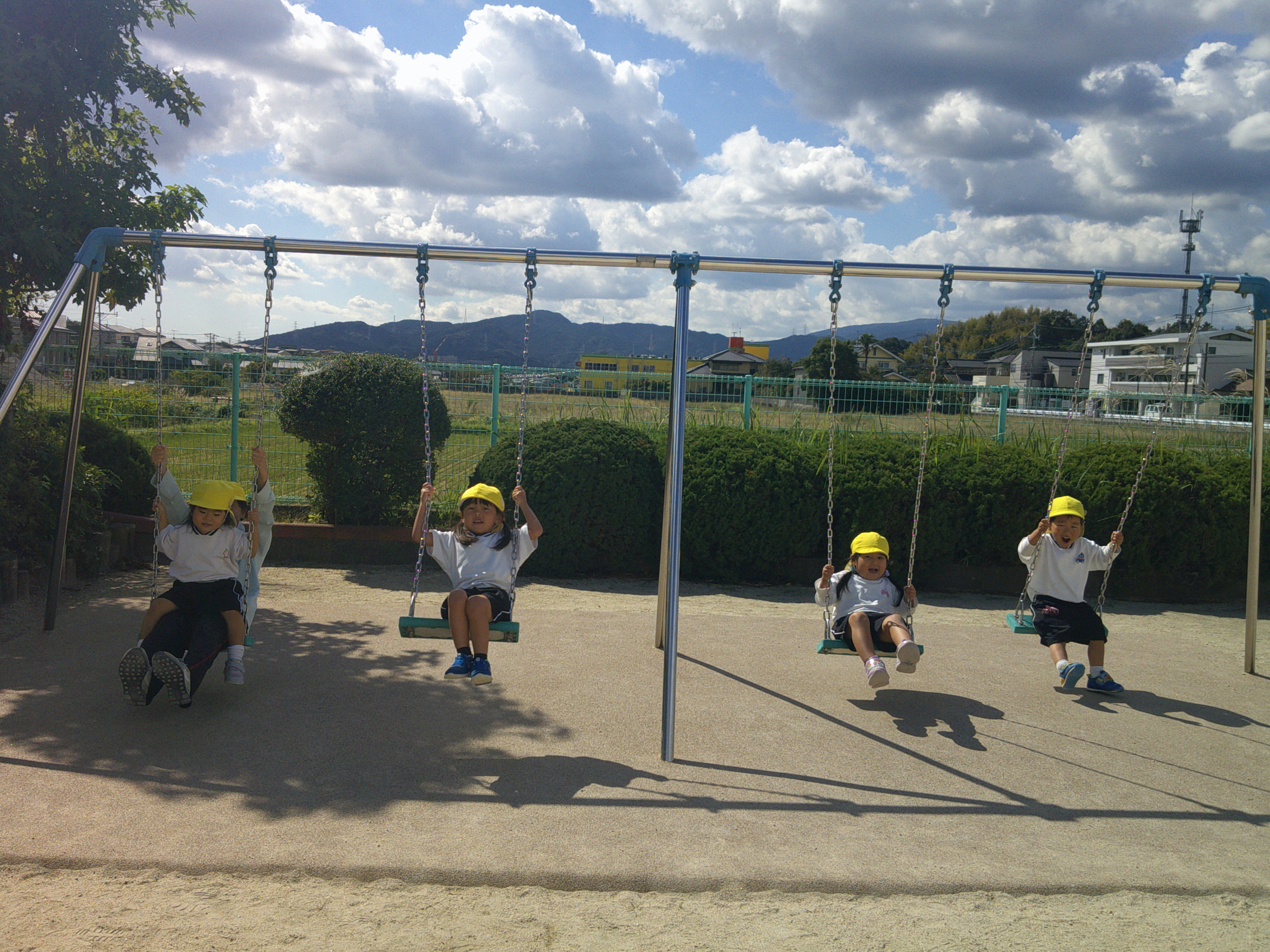 外では・・・ブランコ・鉄棒・ジャングルジム・サンゴ・砂場・木のおうち・雲梯・登り棒・・・元気いっぱいです😊