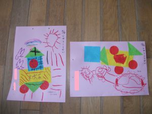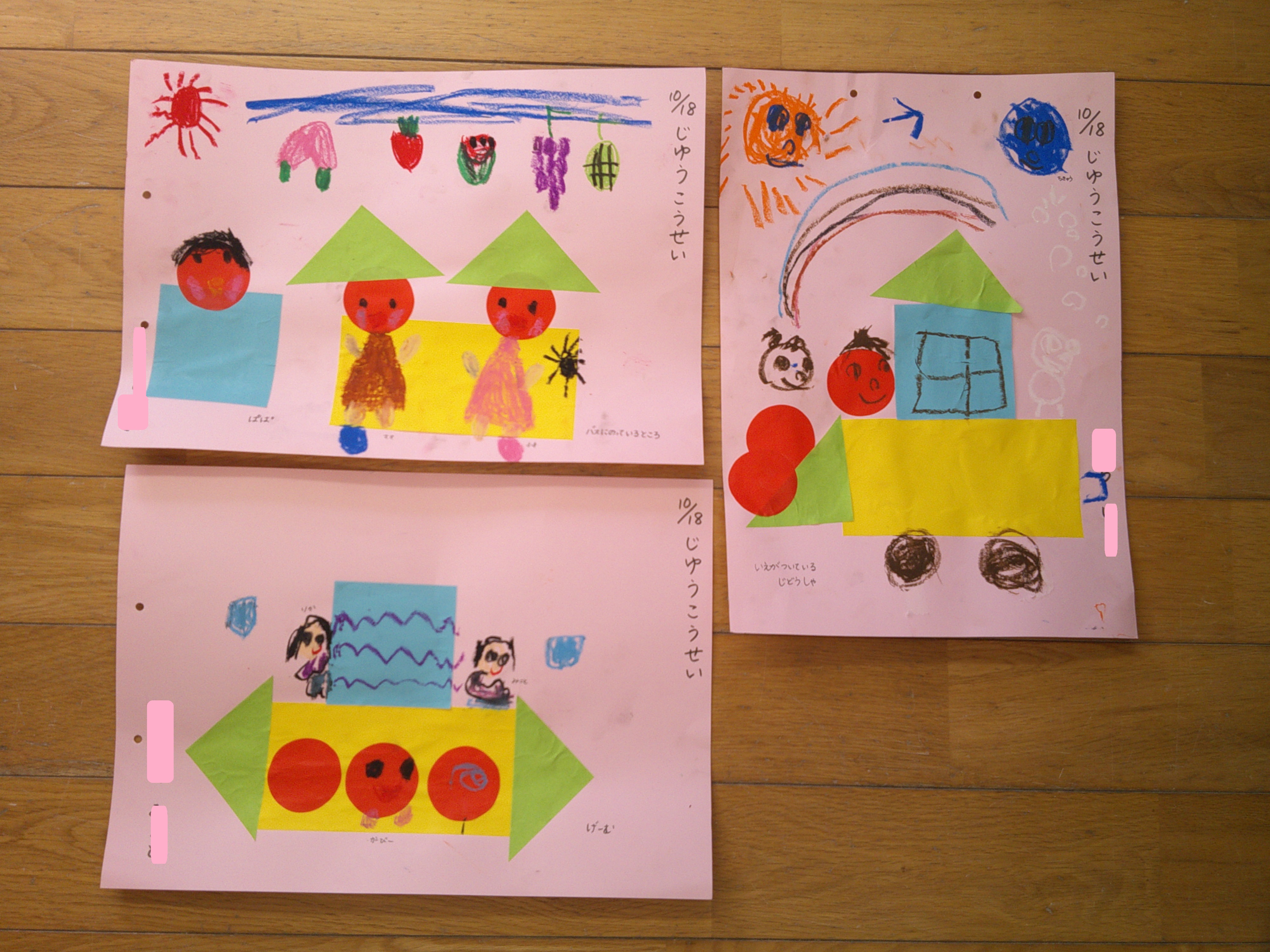 三角△・丸〇・四角☐を組み合わせて形を作る“自由構成”をしました。
