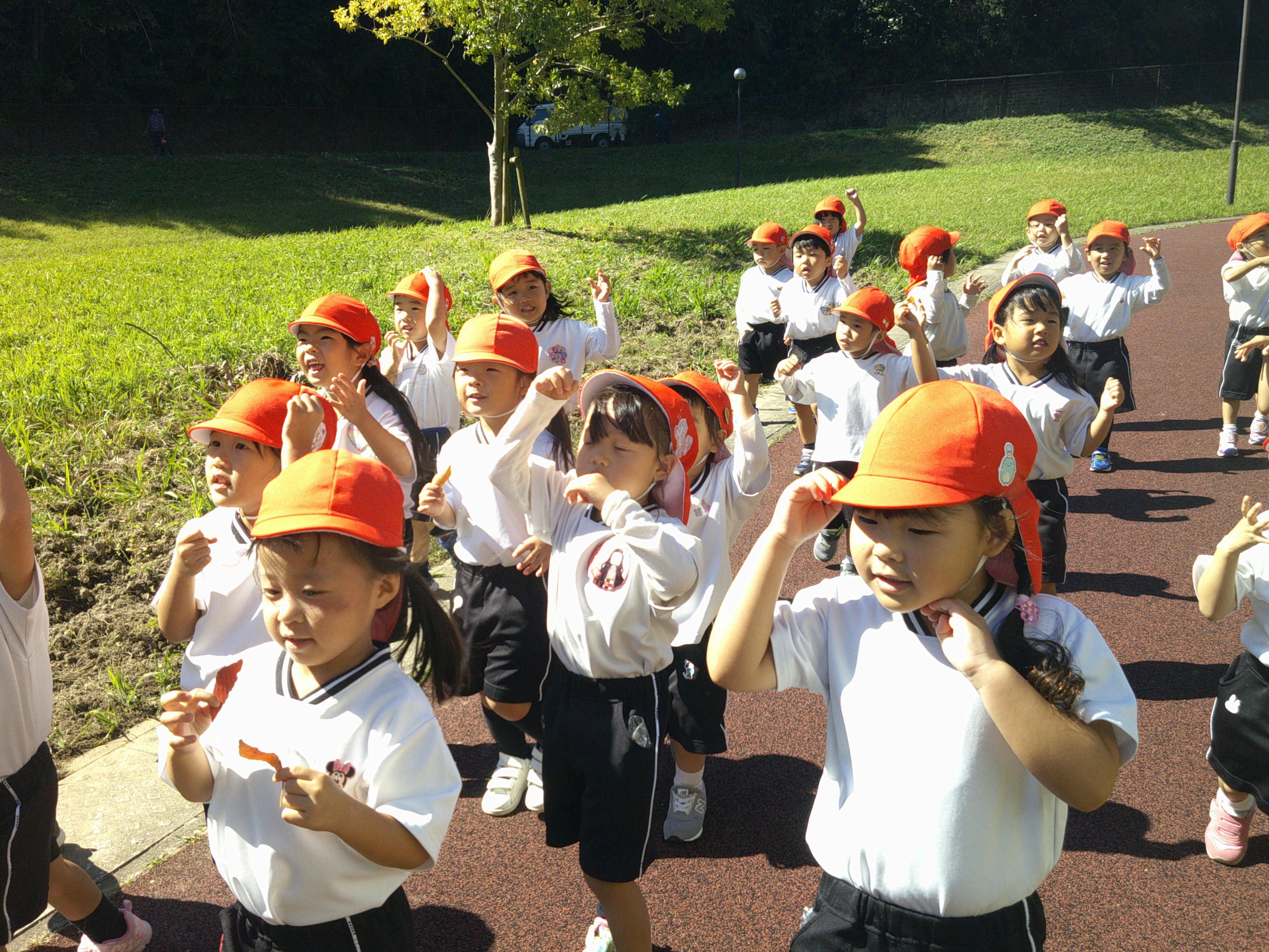 公園に着くまでには「柿がある!」「こっちはミカン!」と秋の物を沢山見つけていました☆