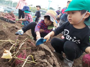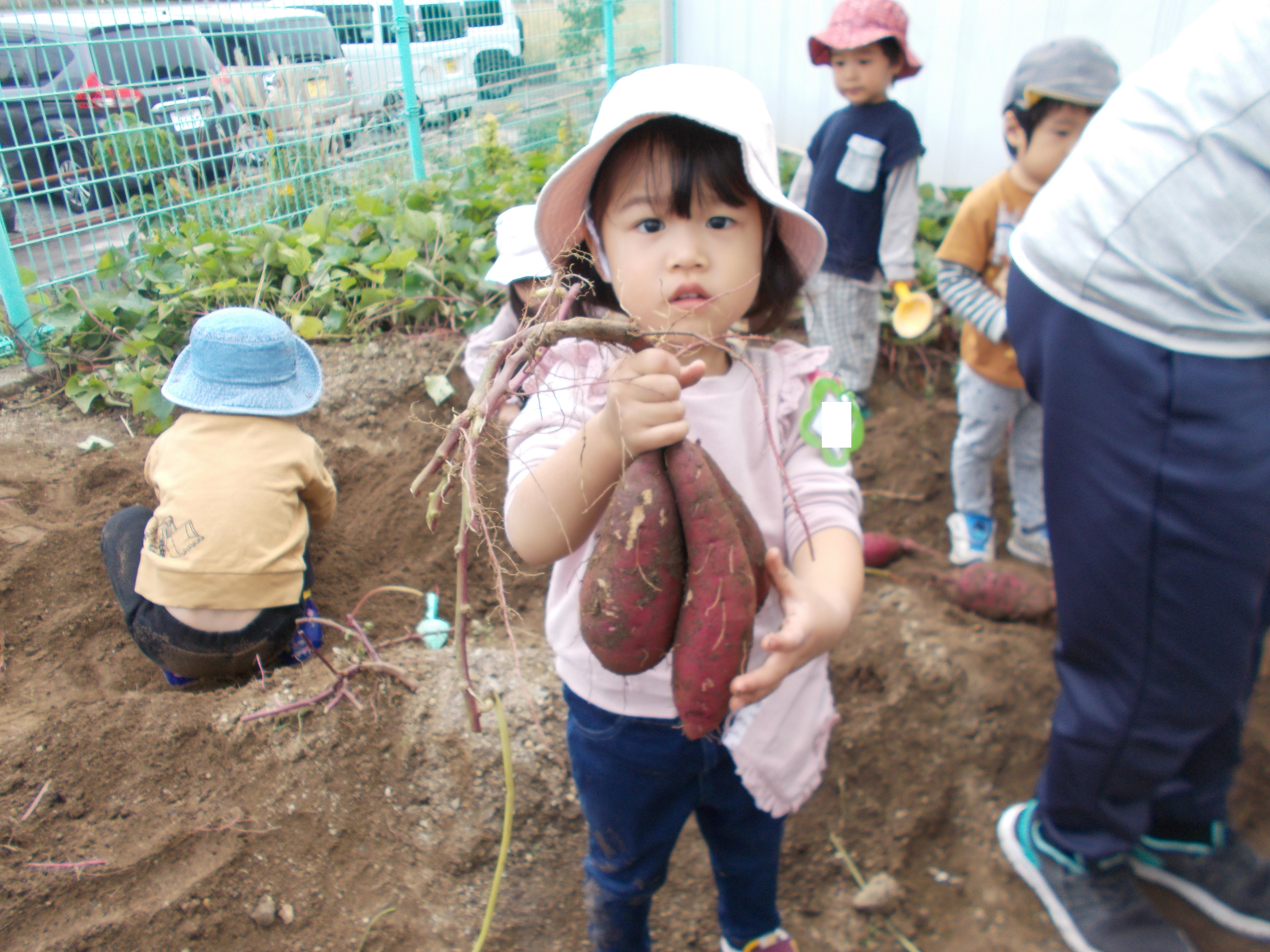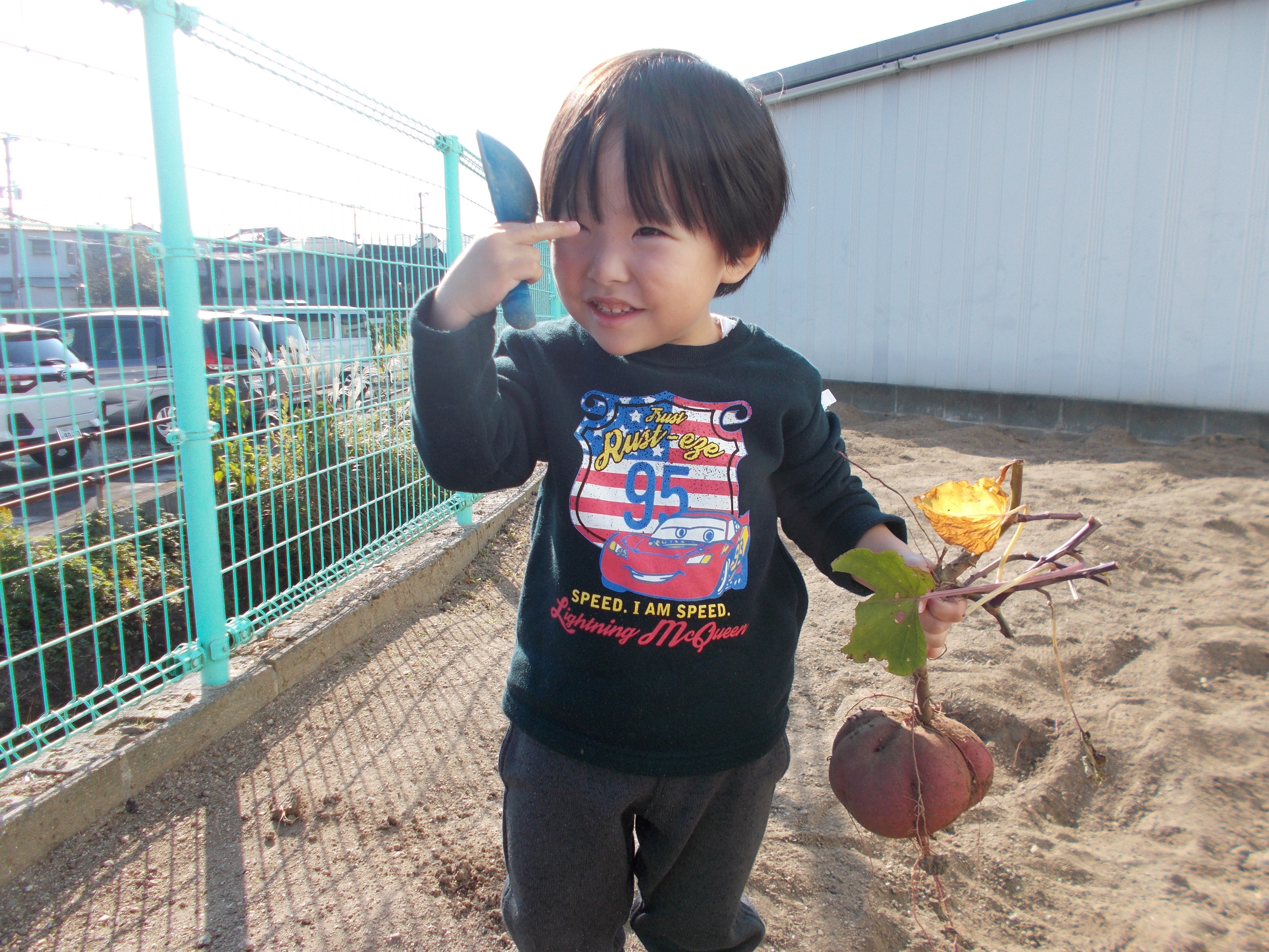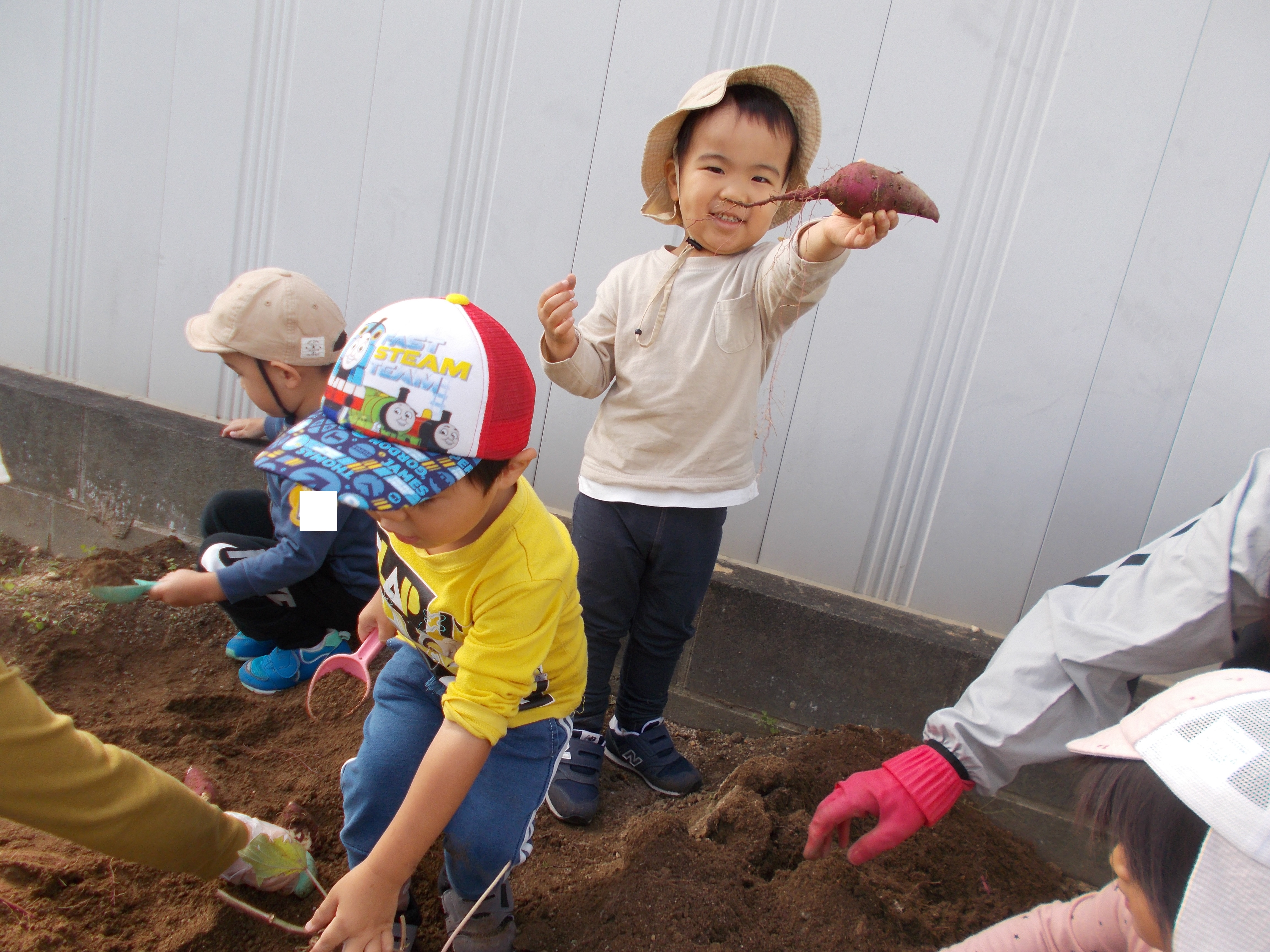 畑のふわふわした土の感触、大きな大きなお芋、ダンゴムシなどの虫たち…子どもたちは大喜びで、畑の時間を楽しんでいました🎵