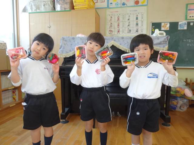 作りたい物を話し合い、みんなが持ってきた材料を使って、たくさんの品物を作って来たすみれ組さん(#^^#)