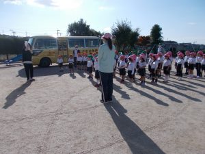 バスの中で困った時どうしたらいいのか、クラクションの鳴らし方やどんな時に鳴らすのかお話をしました。