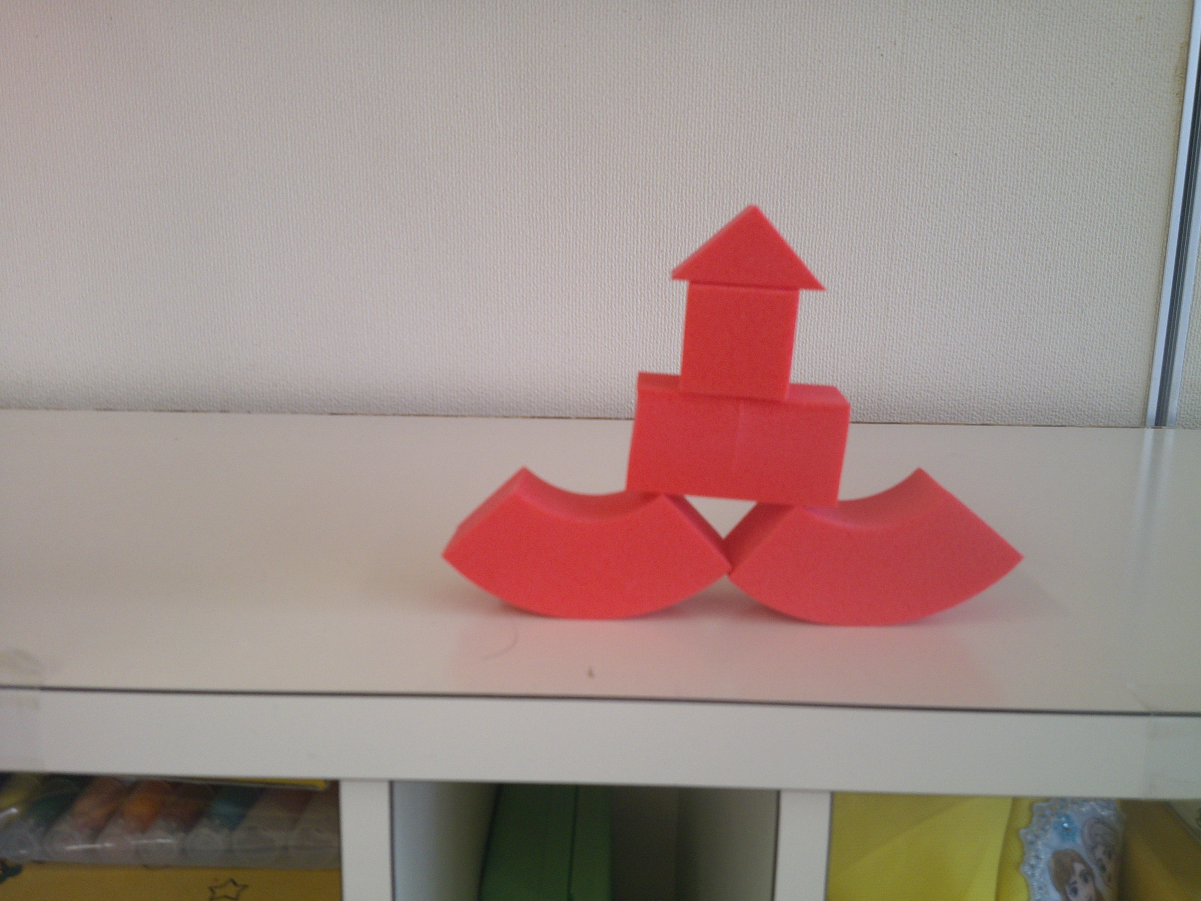 最後は沢山のブロックでお友だちと一緒に作りました。