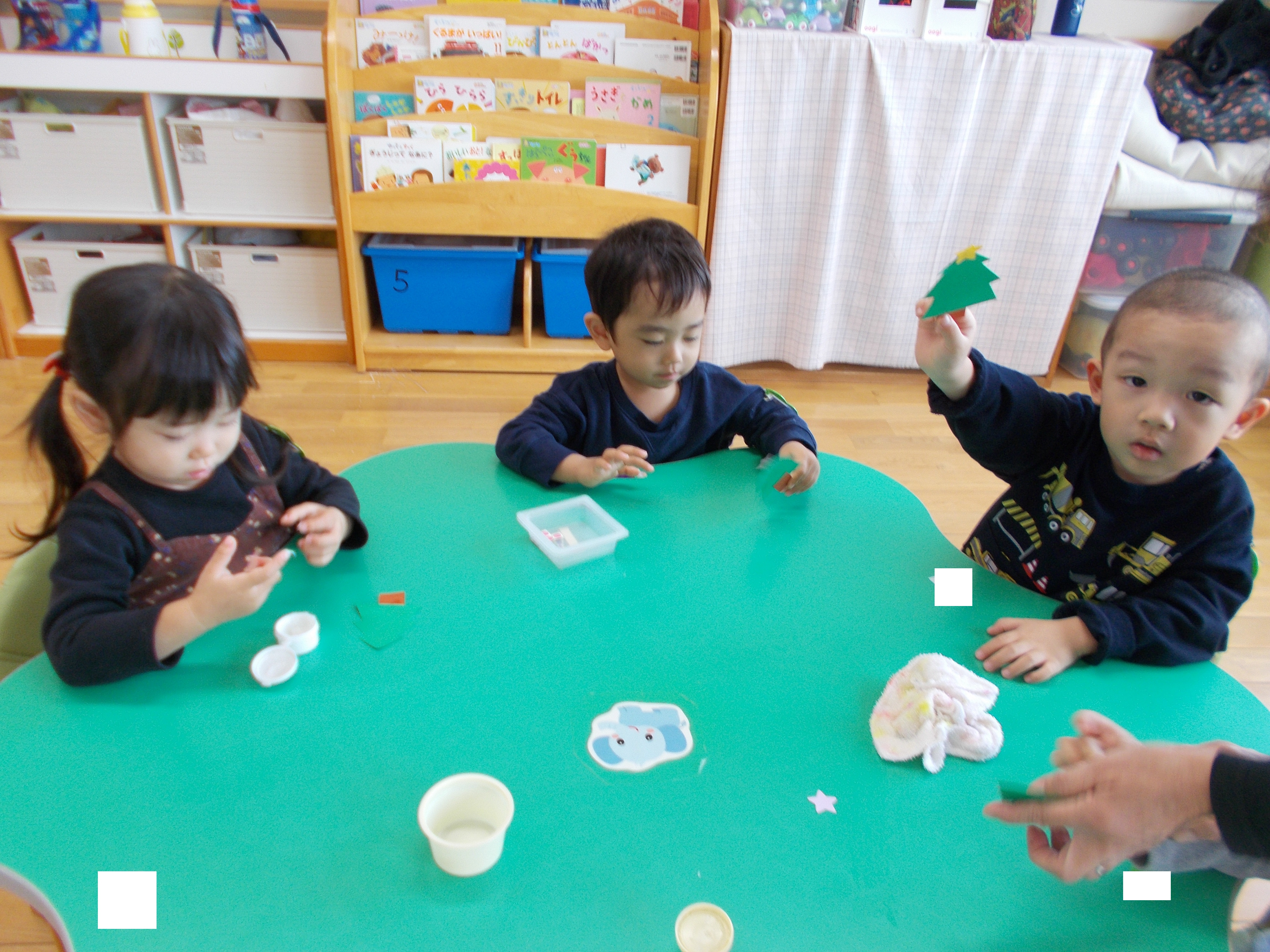 その後は、ツリーにシールで飾り付け🎵シールを隣の人に渡すということに挑戦しました✊