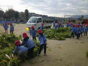 大根の山の中から自分の好きなものを選び、年長さん年中さんは6つ、年少さんは5つ持ち帰りました!
