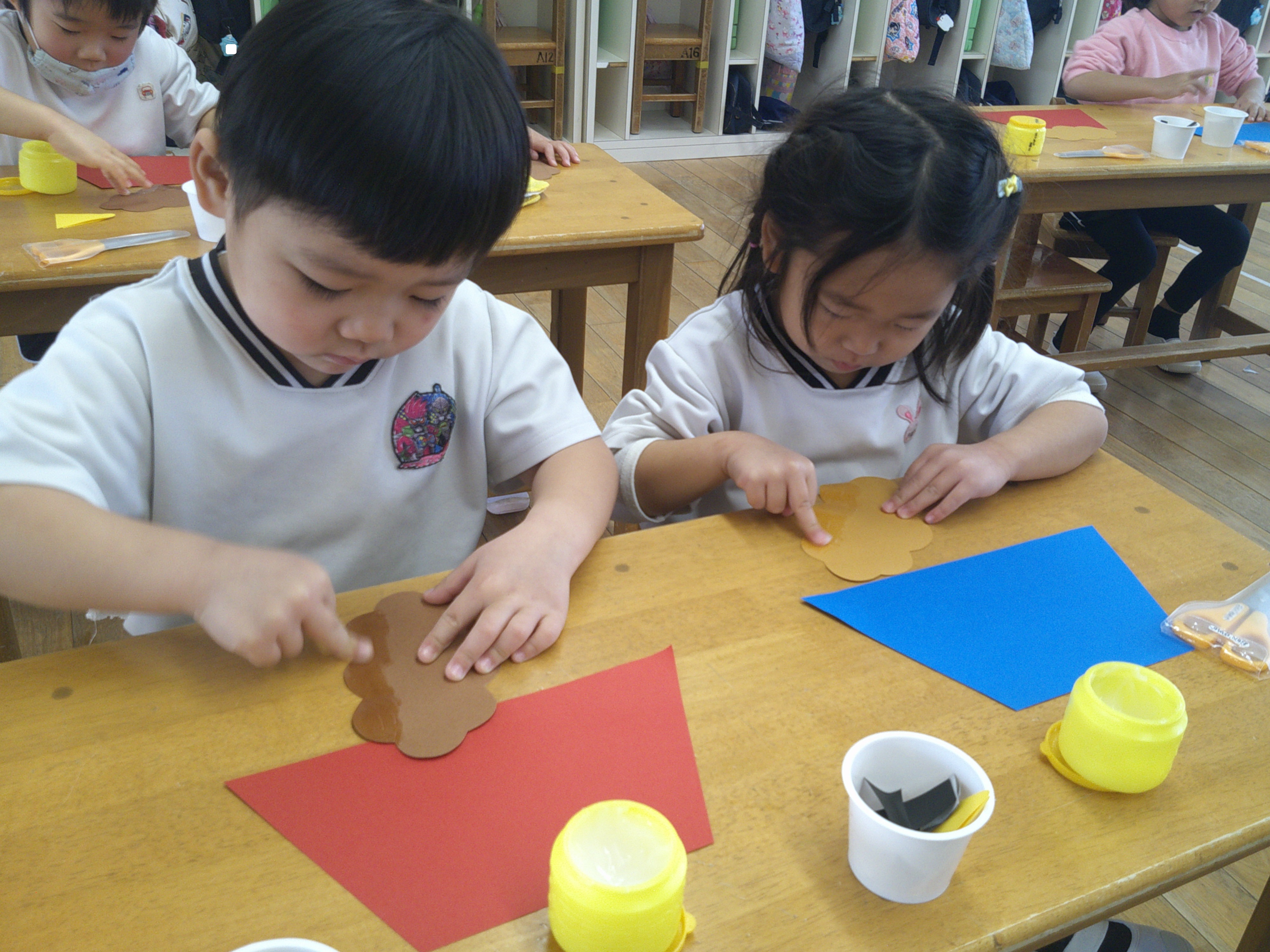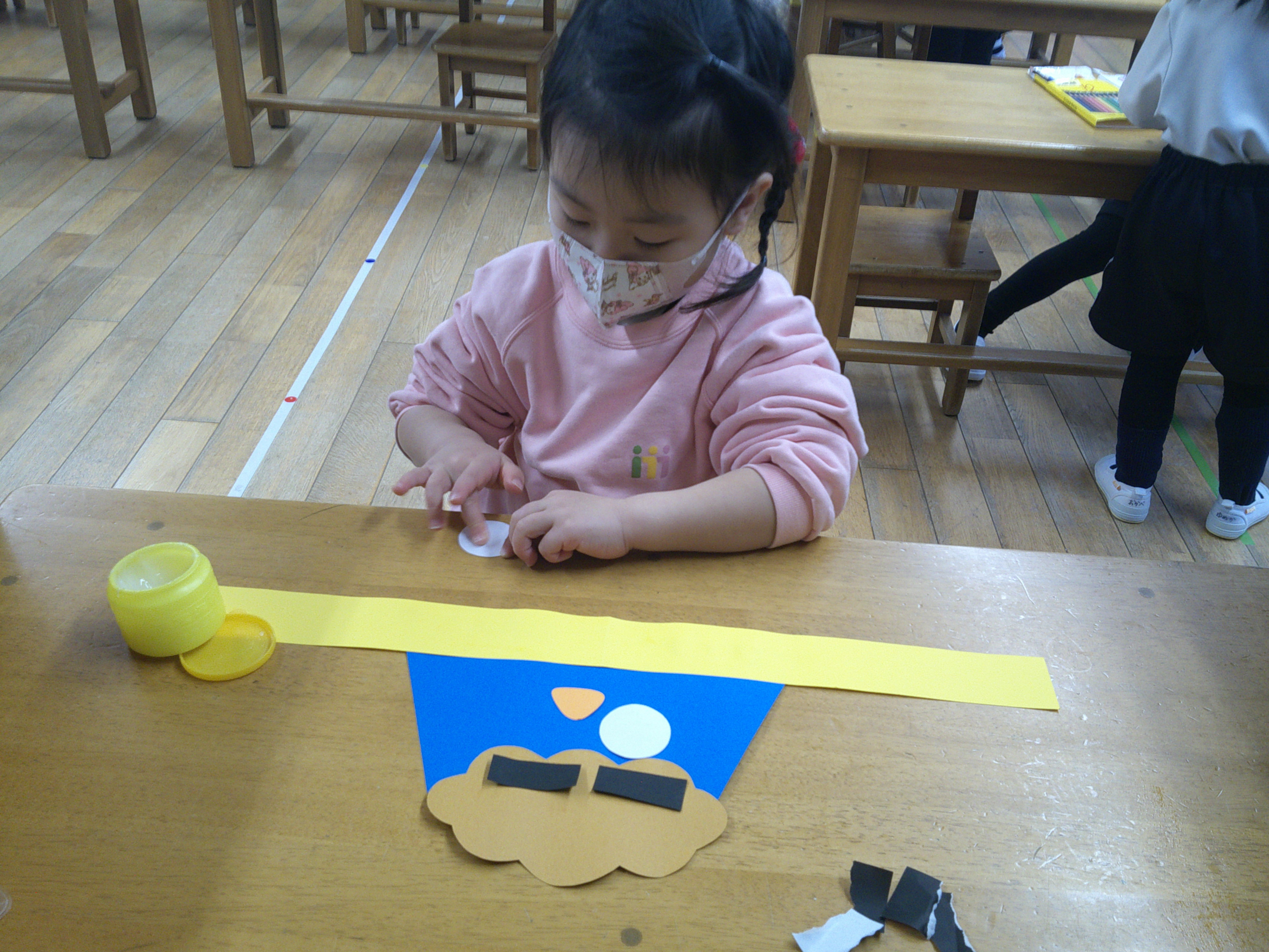 今週は節分の豆まき遊びに向けて、鬼のお面を作りました。