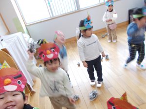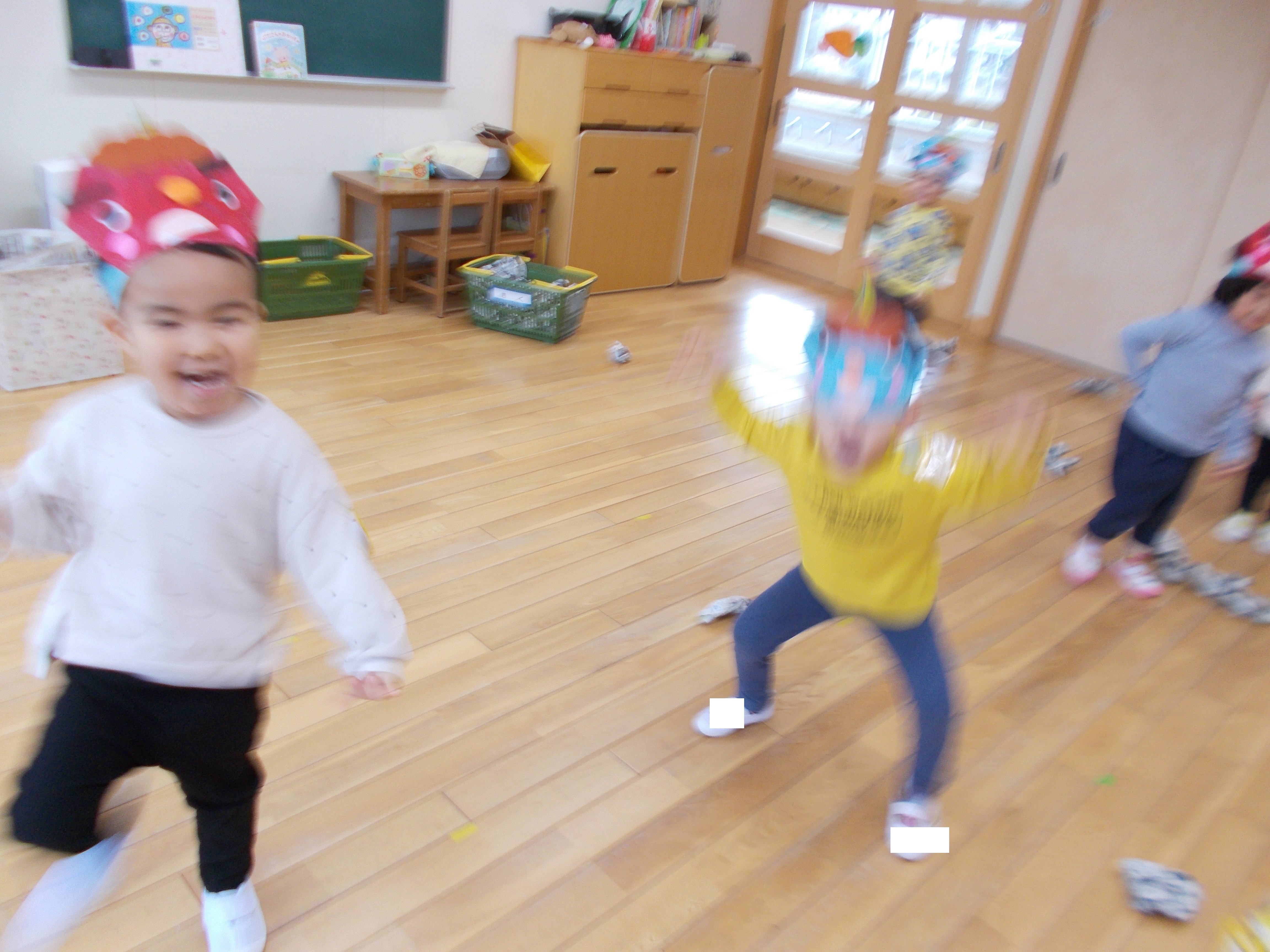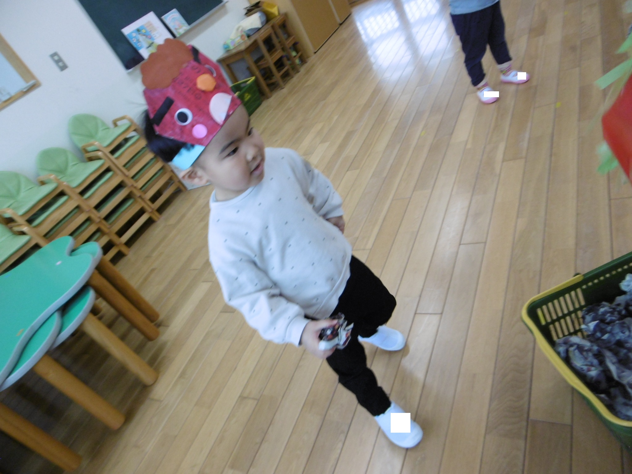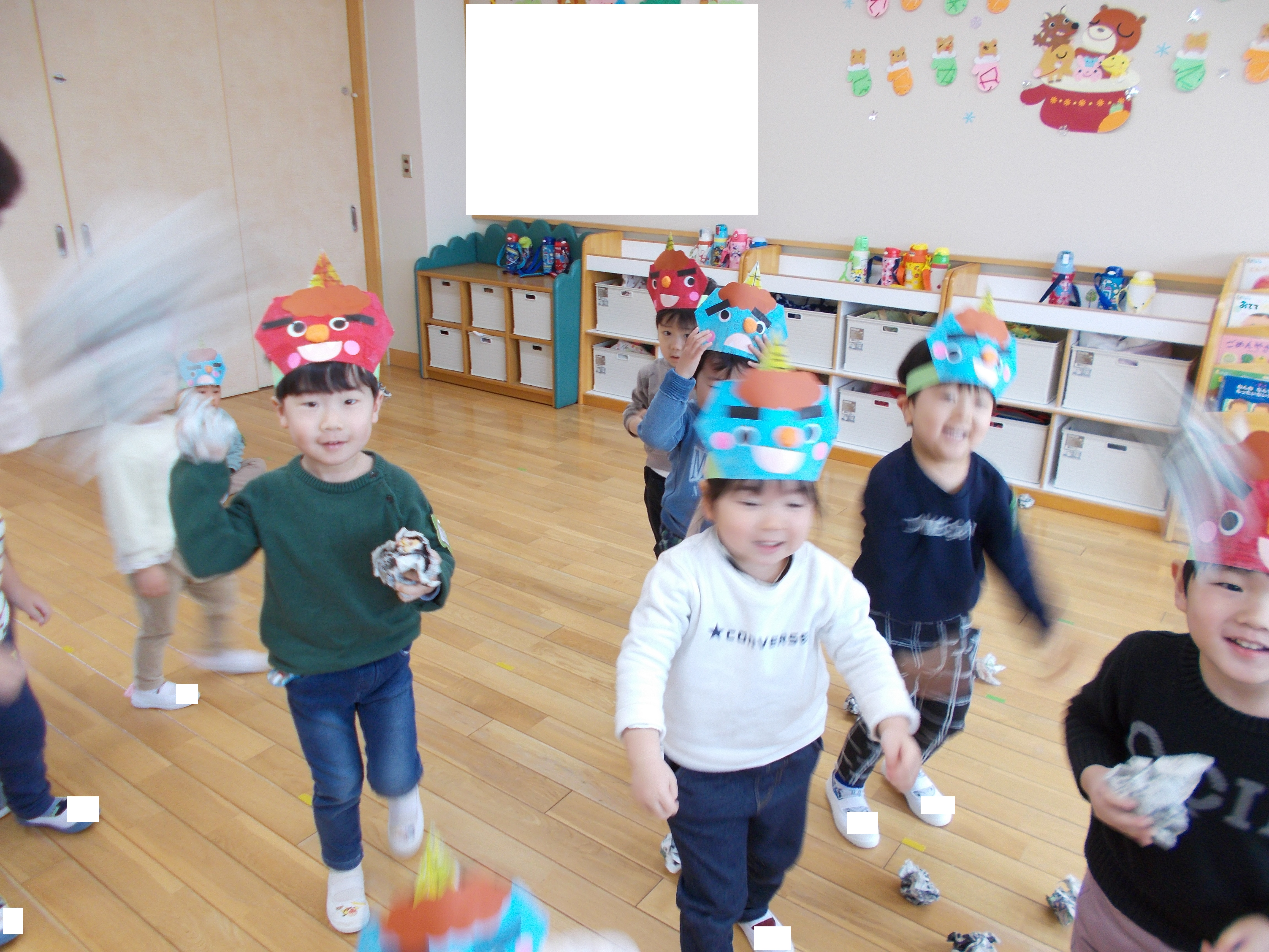 2月3日は、節分👹‼先月作った鬼のお面を被り、ルンルンの子どもたち🎶