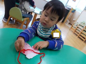 今月は、お店屋さんごっこがあり、お店で売る品物を着々と作り準備を進めています😄✨
